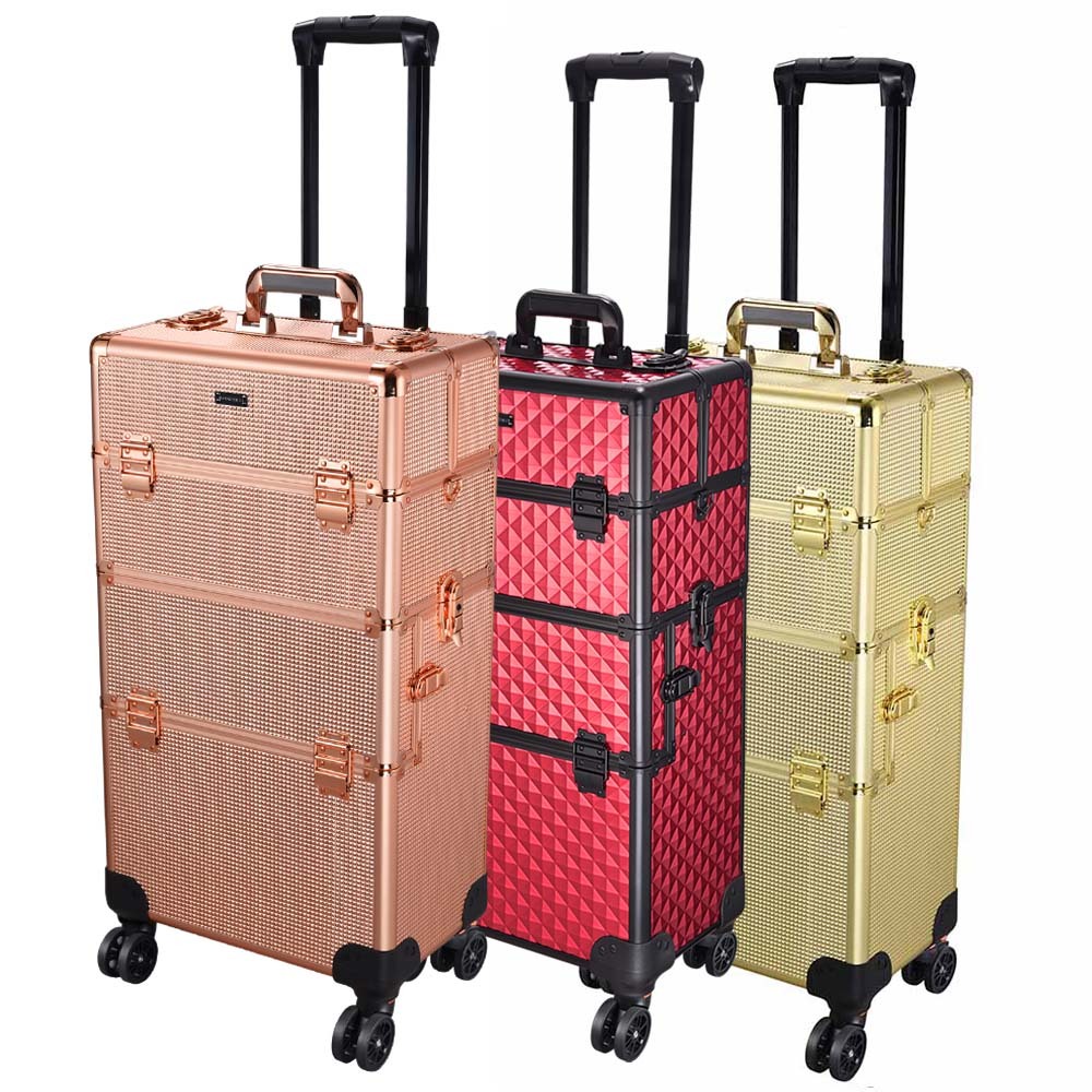 Portable Bling-Designed 2in1 Free Combination Rolling Makeup Case with 4 Universal Wheels & Detachable Cases - customizable independent & combined usage
