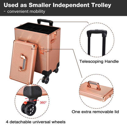 - Used as Smaller Independent Trolley - bottom section combining an extra lid as a smaller mobile case
