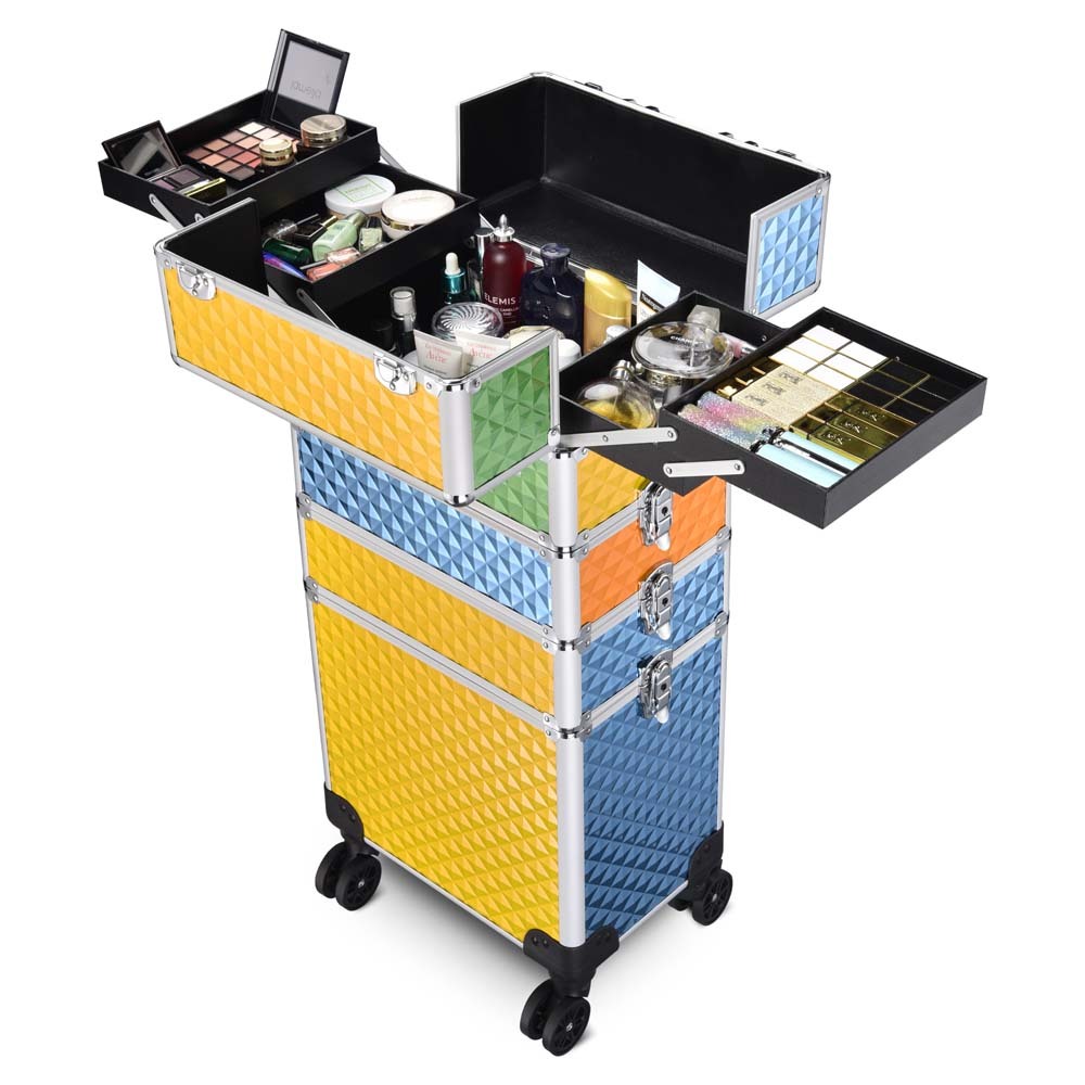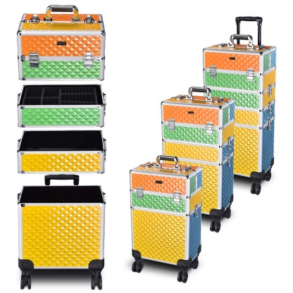 This 4 in 1 Large Capacity Trolley Makeup Travel Case on 4 wheels is consists of 4 detachable compartments which can be freely combined as your demands. Perfect for professional make up artists, manicurists, beauticians, tattoo artists and beauty lovers.