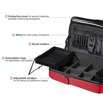 - Warm Red Cloth - a fashion color represents passion & warmth with rich saturation, helps you find your makeup backpack quickly among many backpacks in airport, competitions, large events